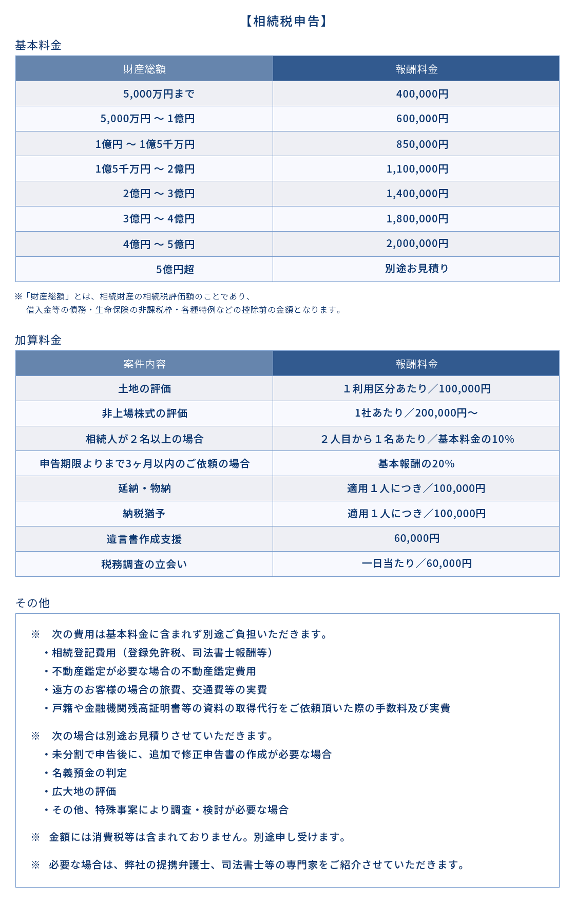 - 「財産総額」とは、相続財産の相続税評価額のことであり、 借入金等の債務・生命保険の非課税枠・各種特例などの控除前の金額となります。