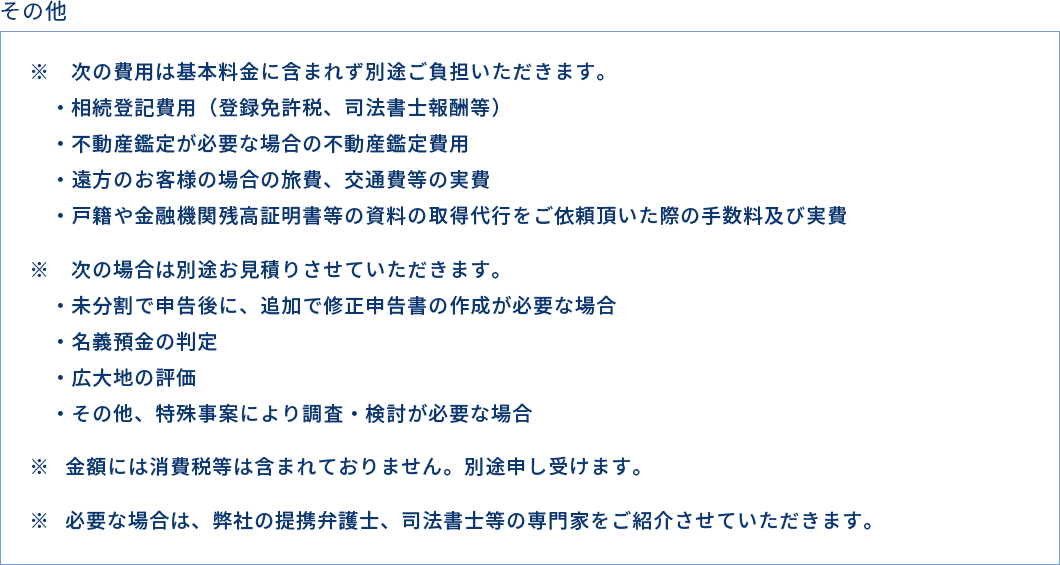 別途お見積りします。 - 年末調整、法定調書合計表、償却資産申告、